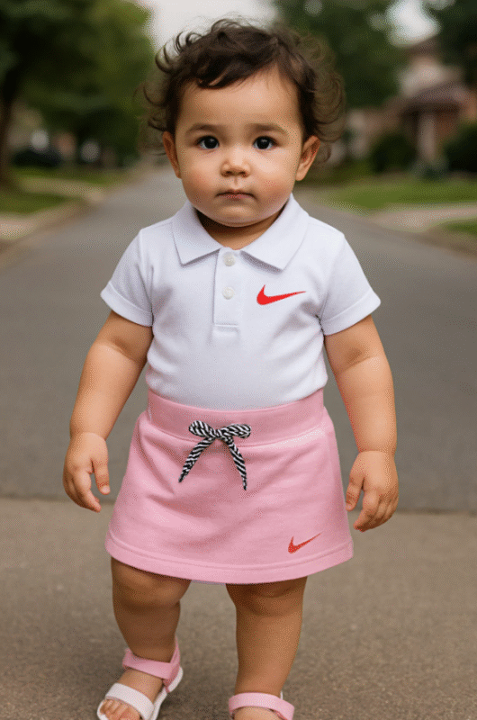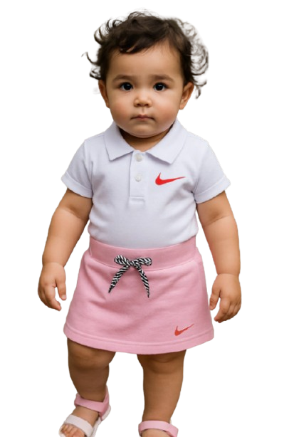 R$24,90 Em até 5x de R$5,44Conj Nike Baby | Body Polo + Saia + Chinelo