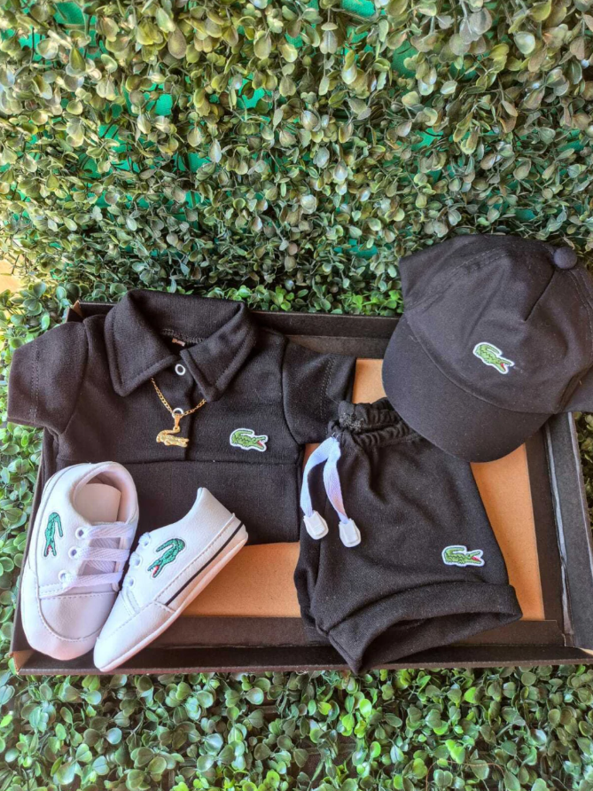 Conj Mandrake | Body Polo Preto + Shorts Preto + Sapatinho