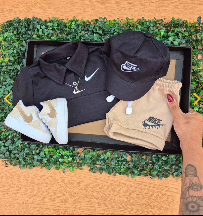 Conj NIKE baby Preto & bege